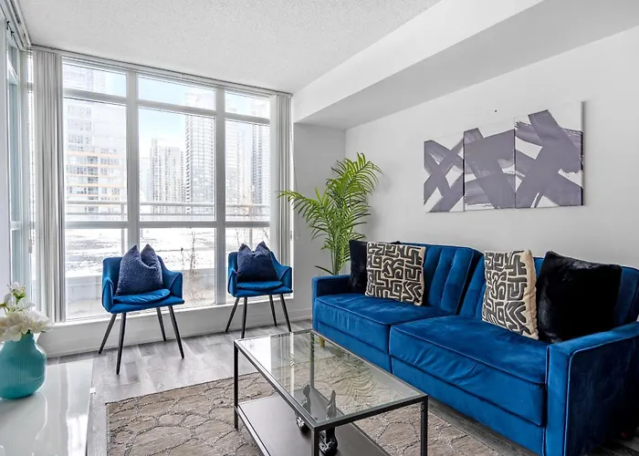 Modern One Bedroom And Den Condo By Cn Tower离瑞普利水族馆1.3公里,离圣劳伦斯市场2.5公里. Roses New York Restaurant提供中东佳肴,距离公寓仅350米. 这家公寓离约克古堡仅几步之遥.